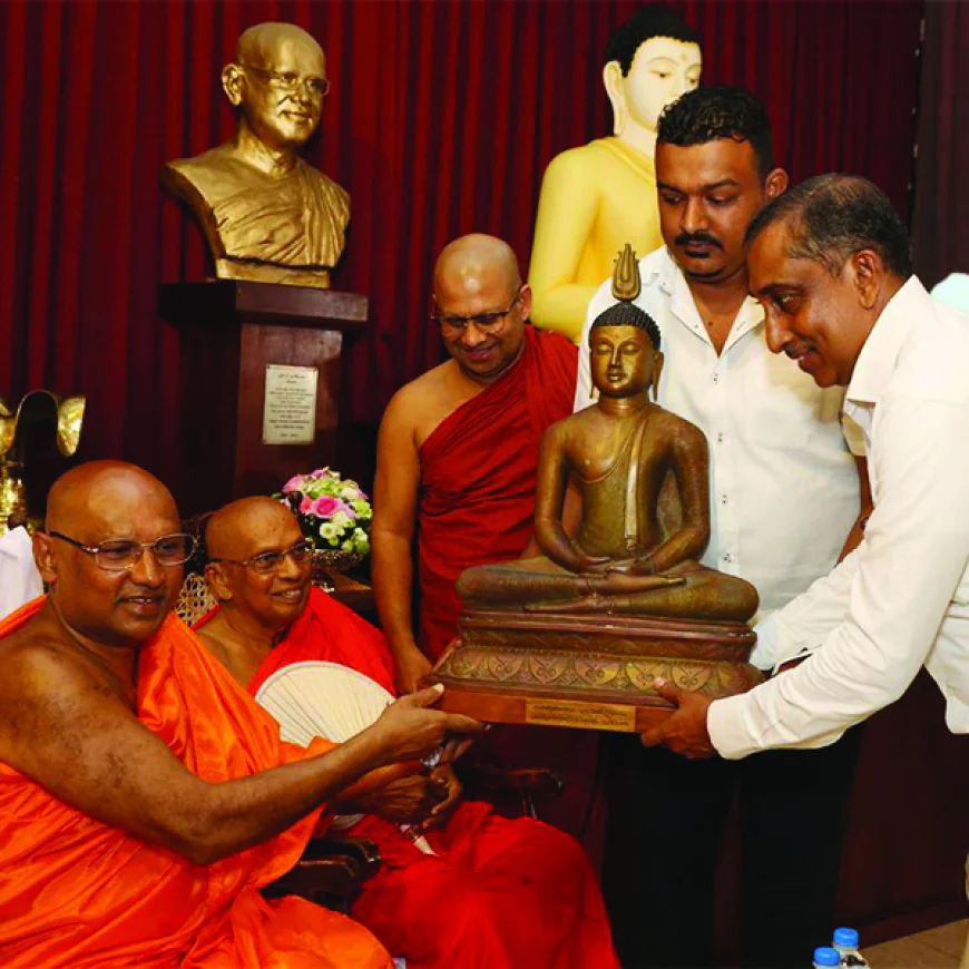 prime land ව්යාපාරික ආයතනයේ ආධිපති ප්රේමලාල් මැතිදුන්ගේ හා එම මැතිනියගේ දායකත්වයෙන් උත්සව සභාව අවසානයේ ගිහි ආරාධිතයින් සඳහා සූදානම් කර තිබූ තේ පැන් සංග්රහය, උත්සවයට පැමිණ සිටි බොහෝ අමුත්තන්ට කතාබහ කරමින් සිය හිතවත්කම් වර්ධනය කරගන්නට මහැඟි අවස්ථාවක් වී තිබිණි. හත්වෙනි විධායක ජනාධිපති ගෝඨාභය රාජපක්ෂ මැතිදුන් මෙන්ම ඩඩ්ලි සිරිසේන වැනි ව්යාපාරිකයින් හා විශ්ව විද්යාල ආචාර්ය මහාචාර්යවරුන් මෙන්ම මාධ්යවේදින් එකට හමුවී සතුටු සාමීචියේ යෙදී සිටින අයුරු තේ පැන් සංග්රහය අවසානය වන තෙක්ම දැක ගත හැකිවිය..
