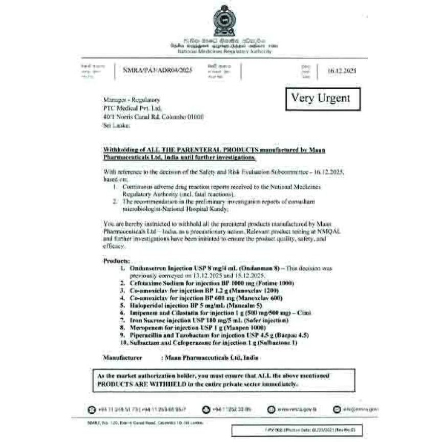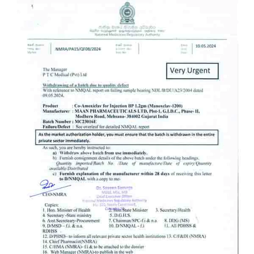 "මෙරට ඖෂධ නියාමනය සම්බන්ධයෙන් පහුගිය ආණ්ඩු අනුගමනය කළේ කිසිසේත්ම විශ්වාස කළ නොහැකි දෙබිඩි පිළිවෙතක්. මේ රටේ ඖෂධ නියාමනයේ ප්රතිපත්තිය “බ්රිතාන්ය ප්රමිතියට” අදාළ ඖෂධ ලංකාවට ගෙන්වීම සහ බෙදාහැරීම වුවත් සමහර ආණ්ඩු, සමහර ඇමතිවරු, සමහර බලධාරීන් තම තමන්ගේ බලය පාවිච්චි කරමින් ප්රමිතියෙන් තොර බාල ඖෂධ ලංකාවට ගෙන්වා සෞඛ්ය ක්ෂේත්රයට ඇතුලත් කළා.