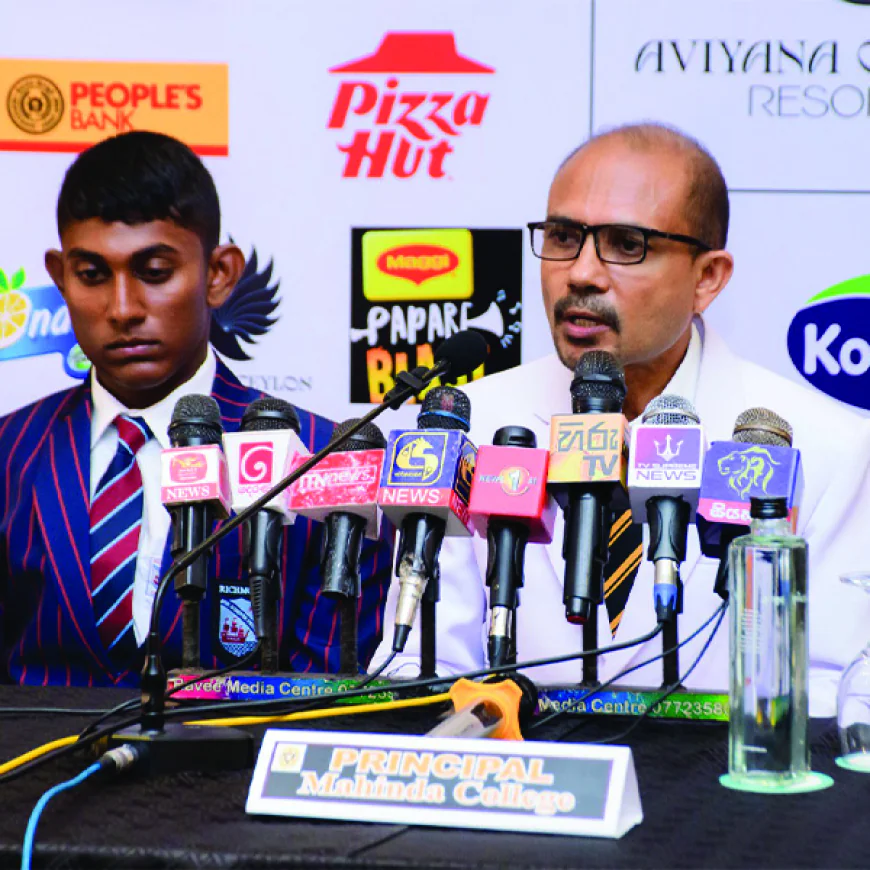මාධ්ය හමුව සදහා රිච්මන්ඩ් විද්යාලයේ විදුහල්පති රුසිර මද්දුමහේවාගේ මහතාද, මහින්ද විද්යාලයේ විදුහල්පති ජනක පේදුරුහේවා මහතාද එක්ව සිටියහ.